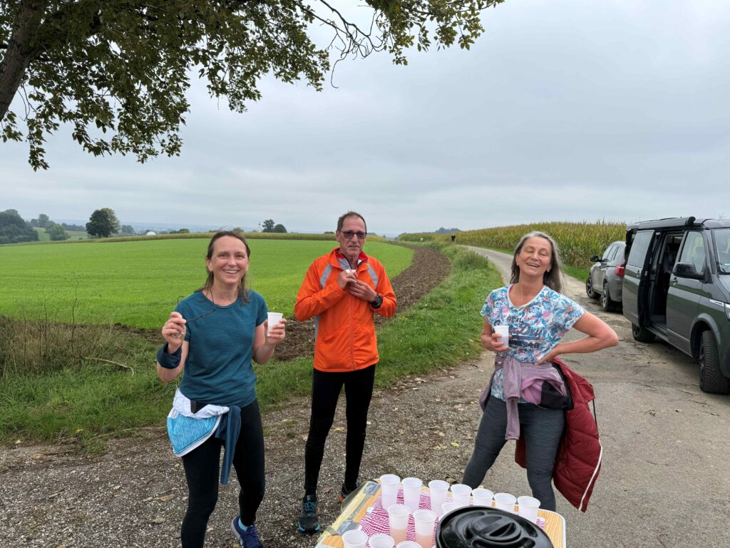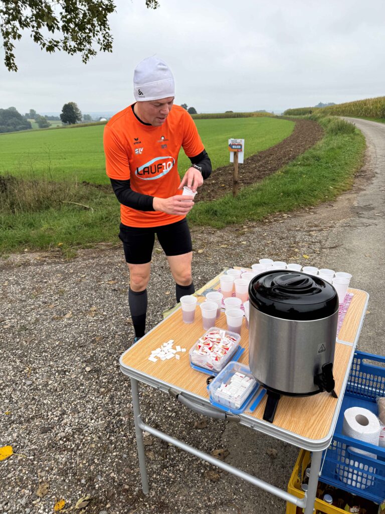 Auf der Strecke gibt es eine Versorgungsstation mit Wasser, Läufertee, Saft und Traubenzucker.