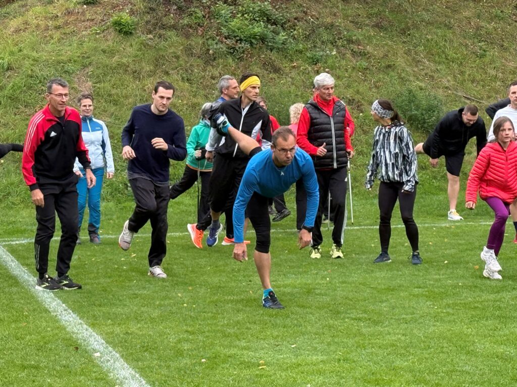 – Um 9:45 findet das gemeinsame Aufwärmen mit Renate statt.